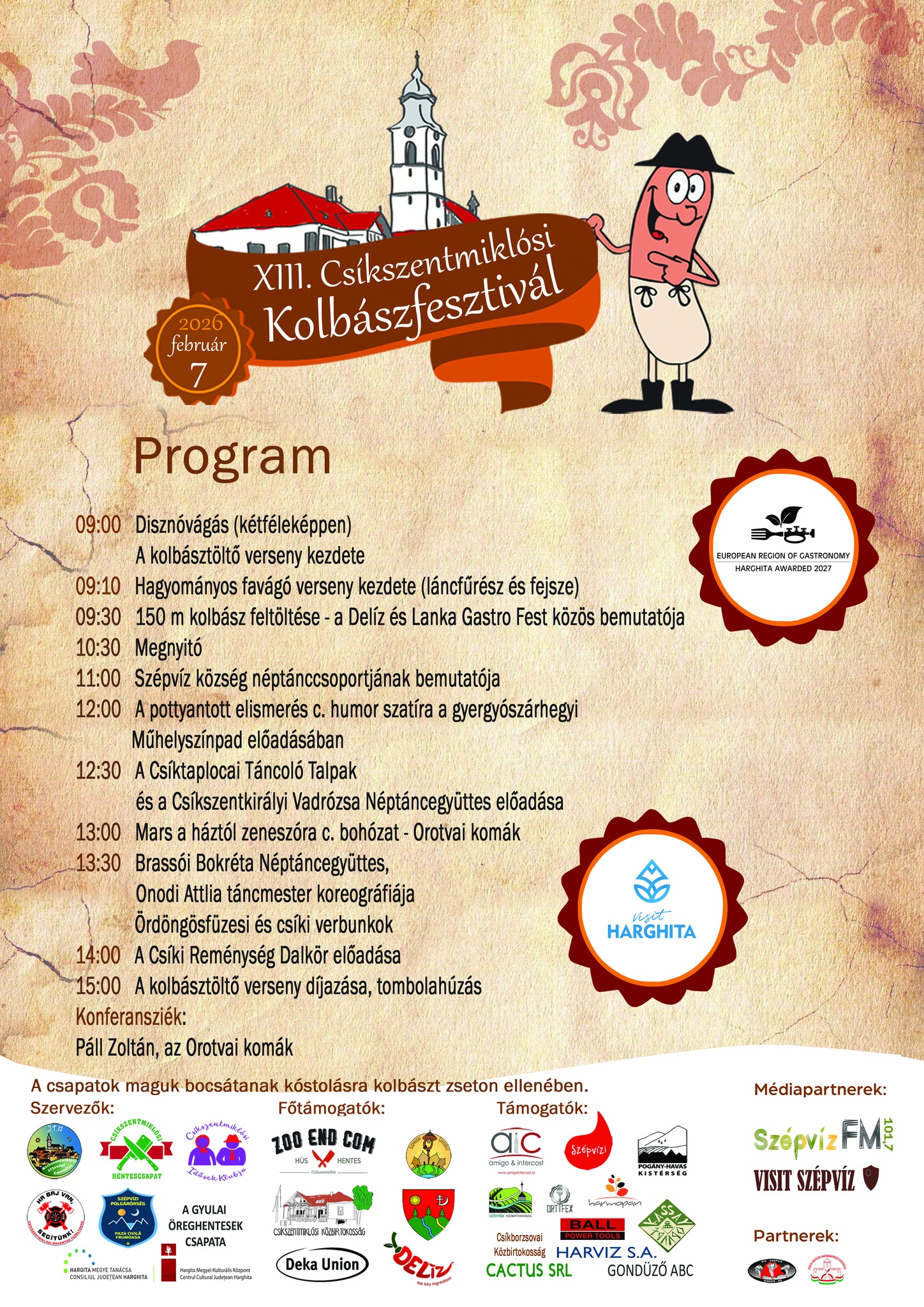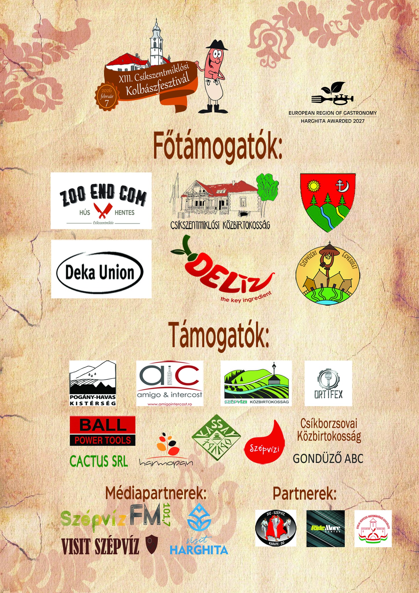 A Csíkszentmiklósi Ifjúsági Egyesület és az egész közösségünk nevében szeretnénk hálánkat kifejezni a főtámogatóinknak: a Zoo End Com-nak, a Csíkszentmiklósi Közbirtokosságnak, a DEKA UNION-nak, a DELíZ-nek, Szépvíz Község Polgármesteri Hivatalának és a Szépvízért Egyesületnek, ugyanakkor támogatóinknak: a Pogány Havas Kistérség-nek, az Amigo And Inztercost-nak, a Szépvízi Közbirtokosságnak, a Borzsovai Közbirtokosságnak, a Harmopan -nak, az Ortifex-nek, a Kassay Fogadó -nak, a Szépvízi Sajtgyárnak, a Cactus SRL -nek, a Gondűző ABC -nek és a BALL Power Tools -nak, és természetesen a partner és médiapartnereinknek : SzépvízFM -nek, Visit Szépvíz -nek, Visit Harghita -nak, a RIDEMORE -nak, a Gyulai Hentesek Hagyományőrző Egyesületének és a Sic Szépvíz – Karate Do -nak!